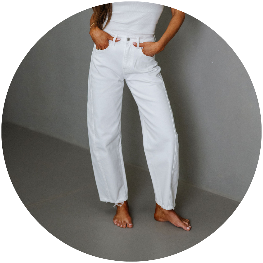 Connor High Rise Barrel Jeans-White